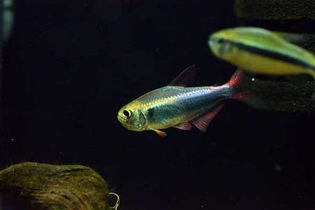 鮮やかな蛍光グリーンの小型コイ科熱帯魚。