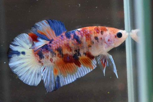 白、赤、青、黒、オレンジいろんな色が細かく散りばめられた個体。